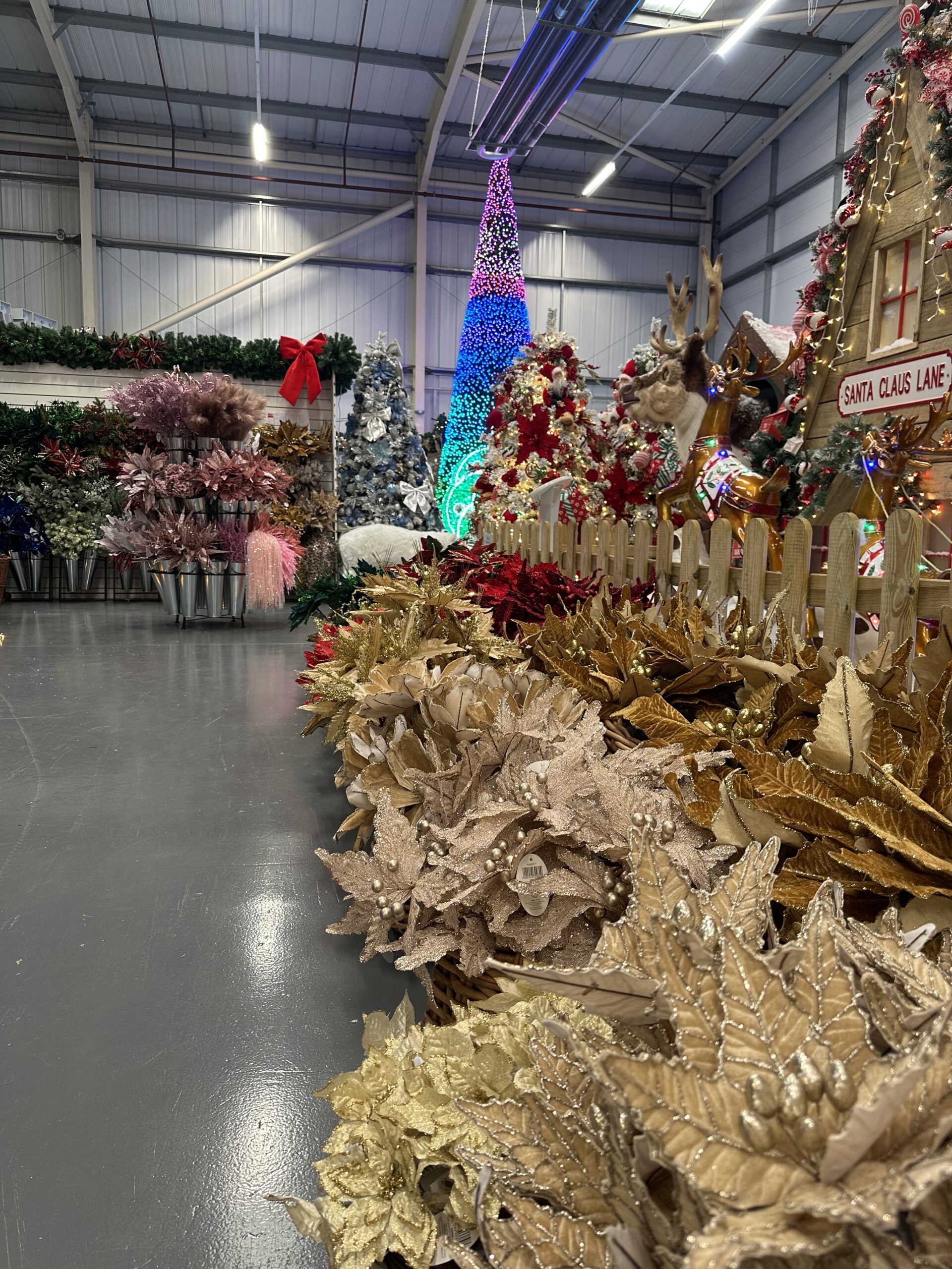 The Festive Christmas Shop is our seasonal retail outlet based in Cwmbran, South Wales, offering customers the chance to shop Christmas on a truly impressive scale. Each year, the shop brings together an extensive range of Christmas decorations, energy-efficient LED lights, high-quality artificial Christmas trees, festive floristry, gift wrap, sweets and seasonal accessories – all at outlet prices.
